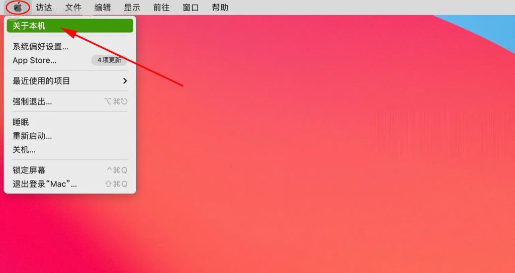 在屏幕左上角的菜单栏中单击 Apple 图标